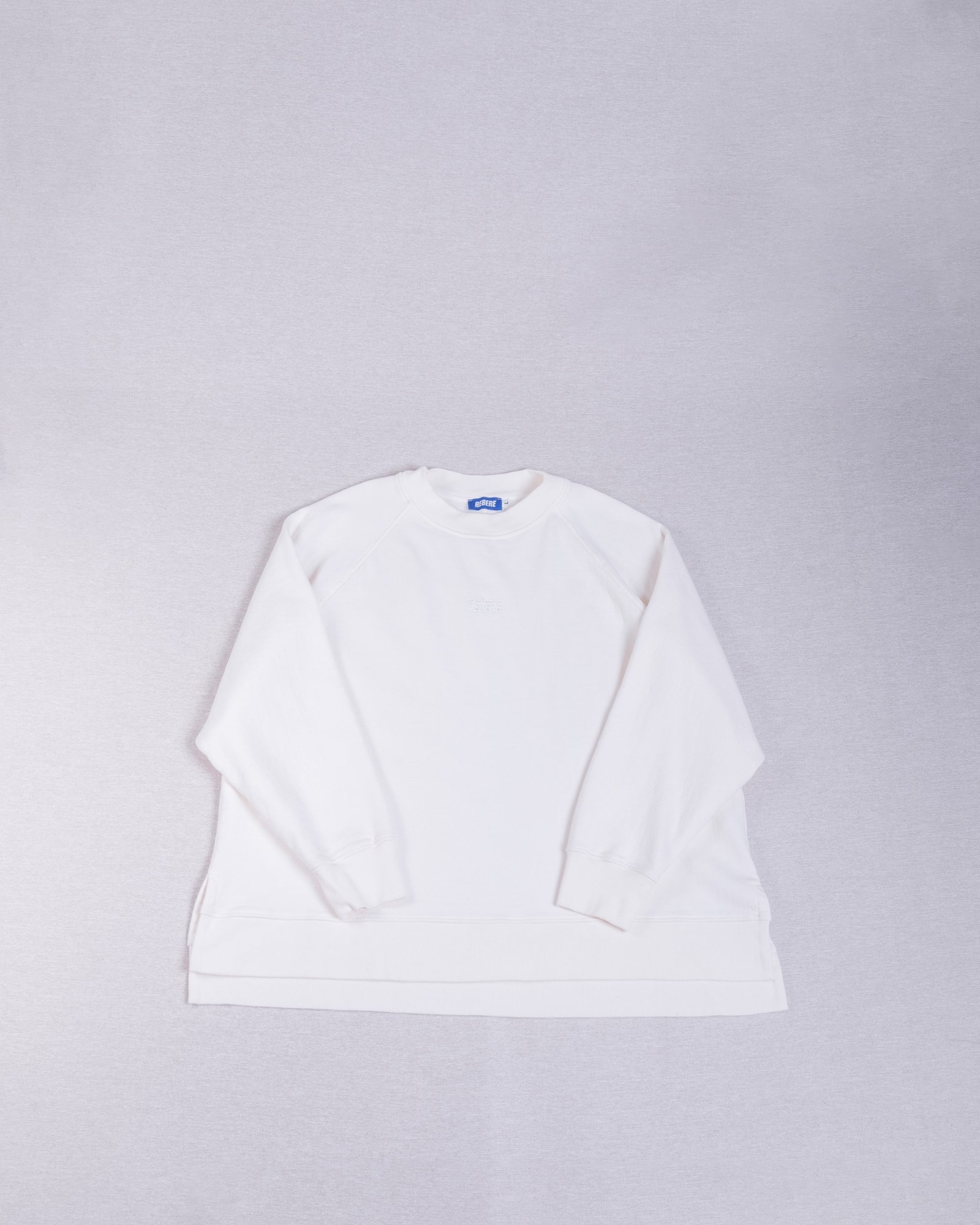 Buzo corte oversize, cuello redondo y manga ranglan, con recortes en los laterales.