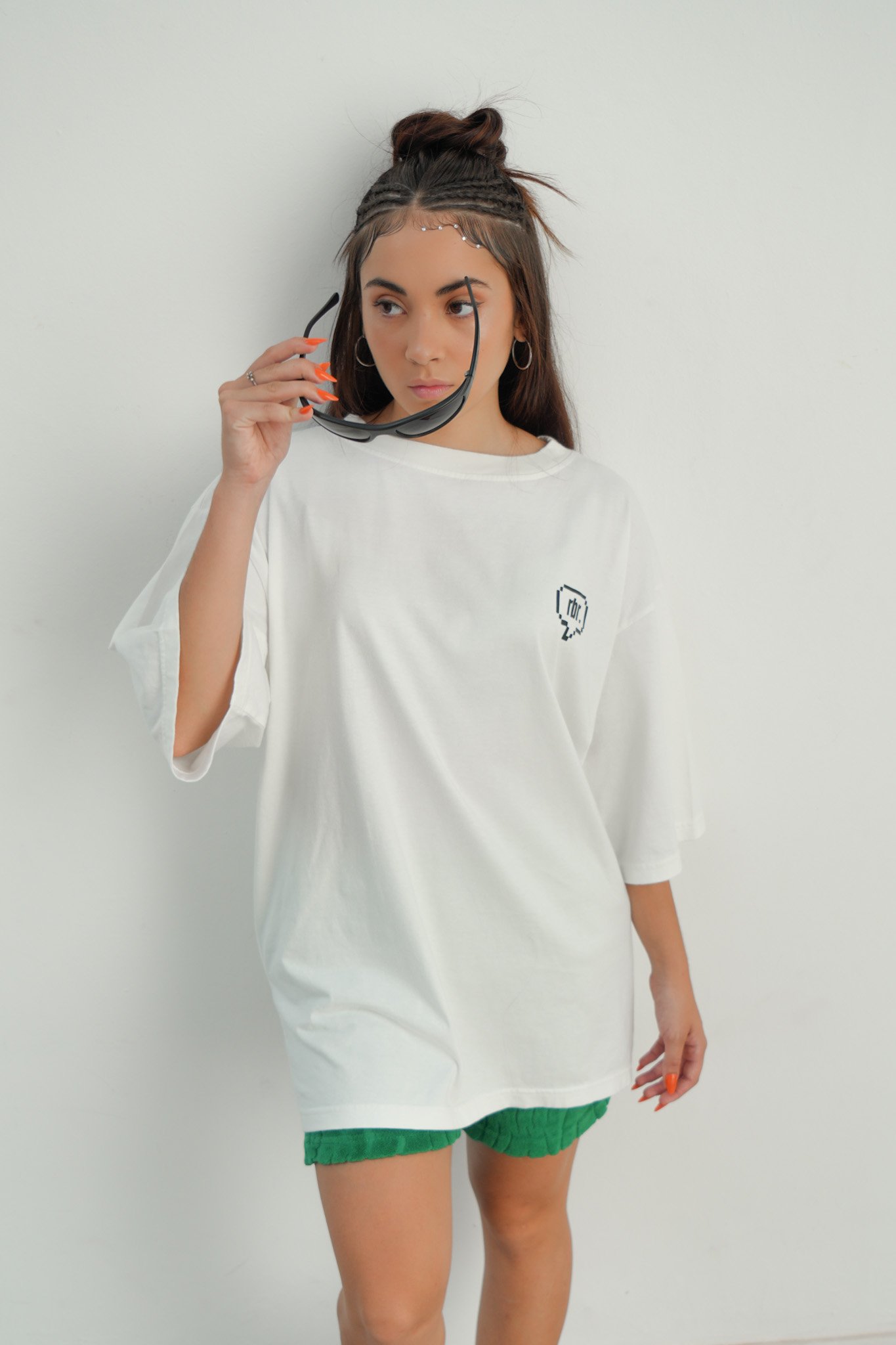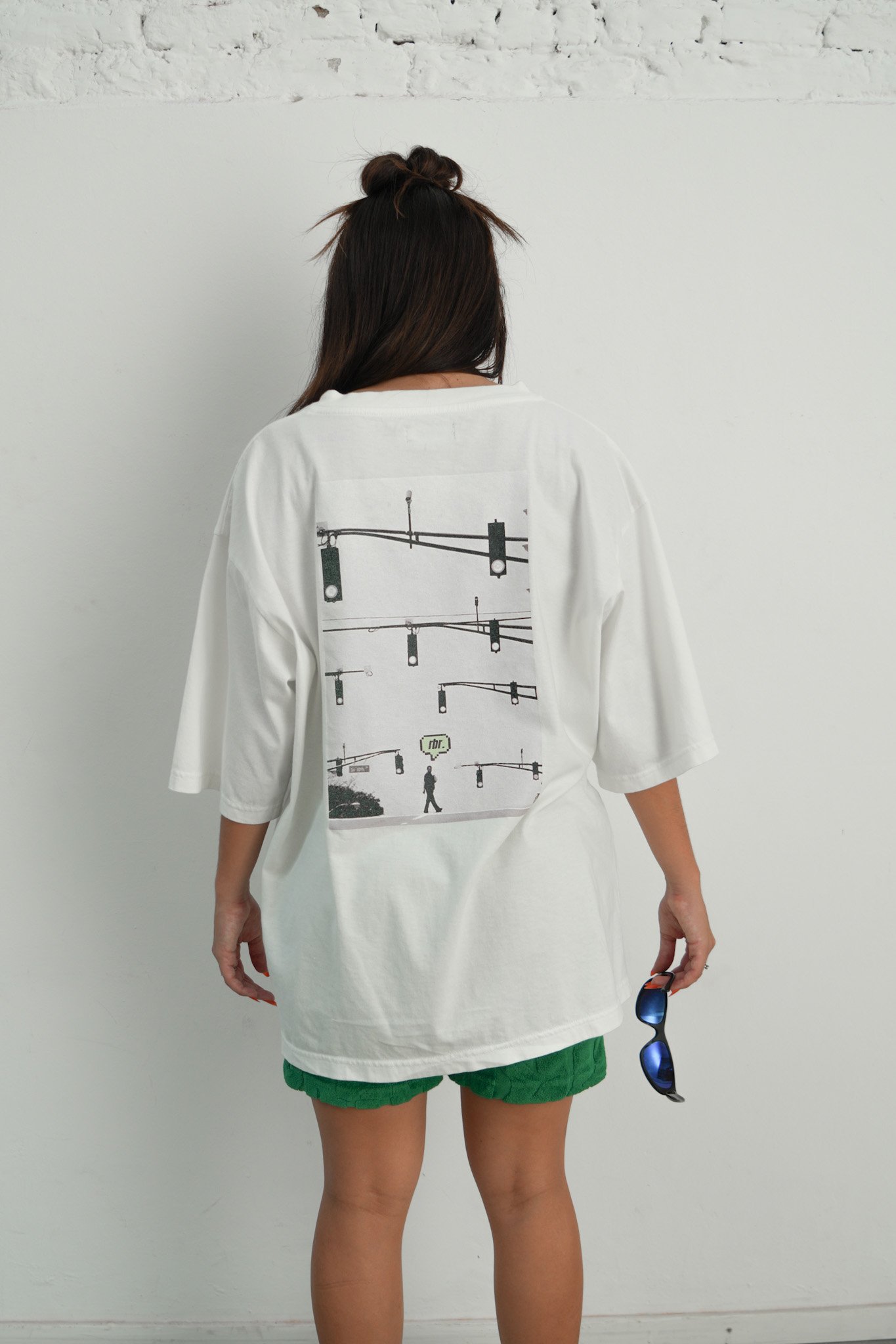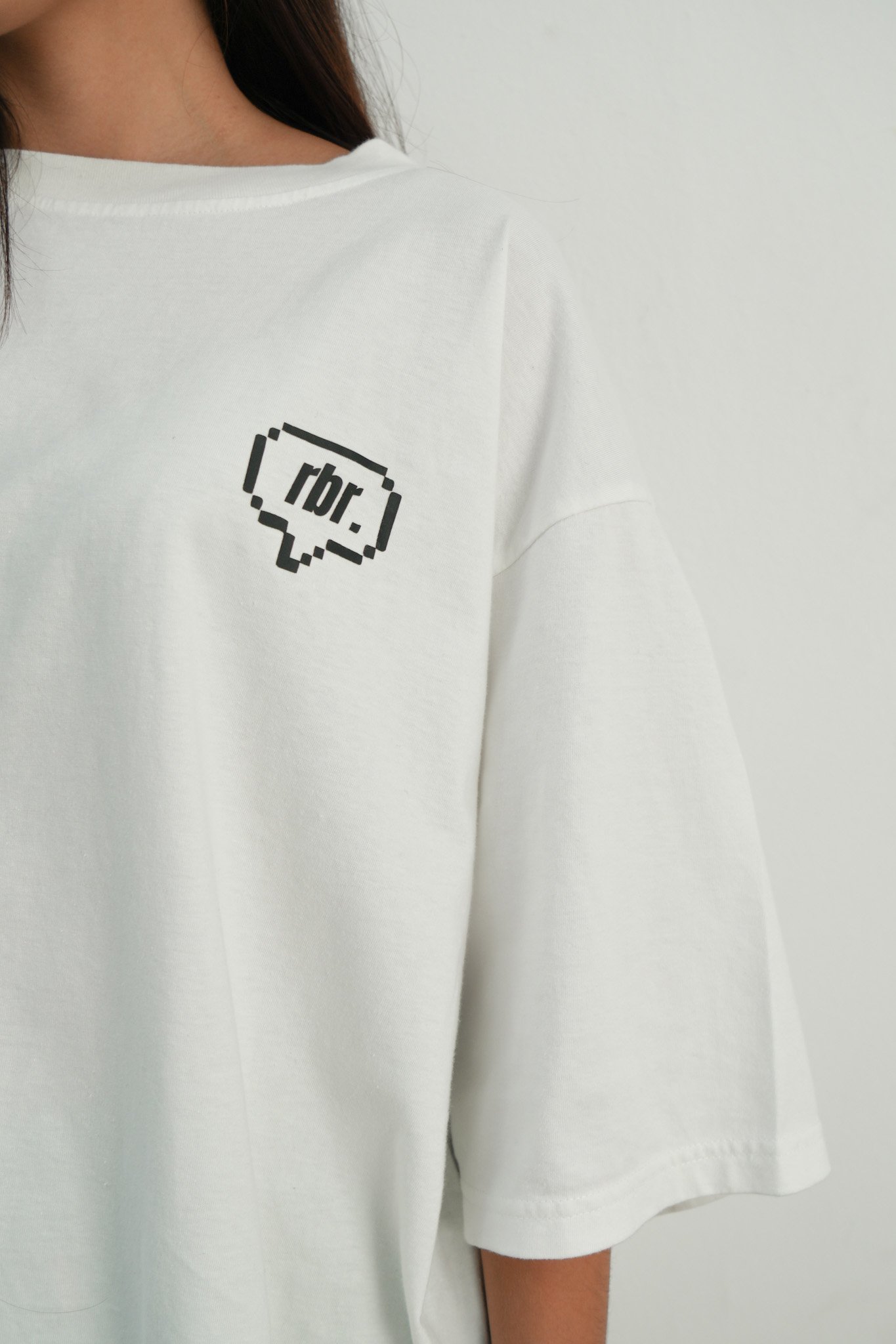 Remera corte oversize, con cuello redondo de rib al tono.